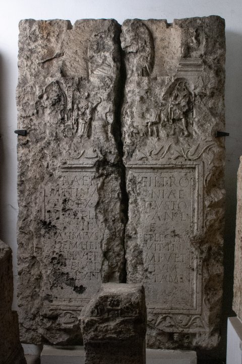- M(arco) Baeb[--- M(arci?)] fil(io) Tro/mentina [---]oni Ae/quo ex a[rmorum] custo/di vet(erano) l[eg(ionis) II adi(utricis)] an(norum) L / h(ic) [s(itus)] e(st) / Dasimius [--- v]et(eranus) leg(ionis) eiu[s]/dem her[es qui] fuit in / coll(egio) vet(eranorum) c[oll(ega?) opti]mi(?) vet(erani) / [l]eg(ionis) eiusd[em secun]dum / [v]olunt[atem te]stament(i) / [fac(iendum) cur(avit)]