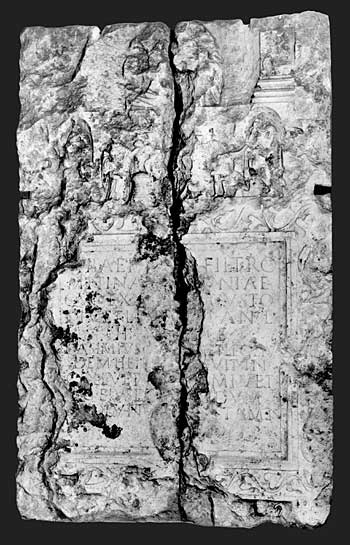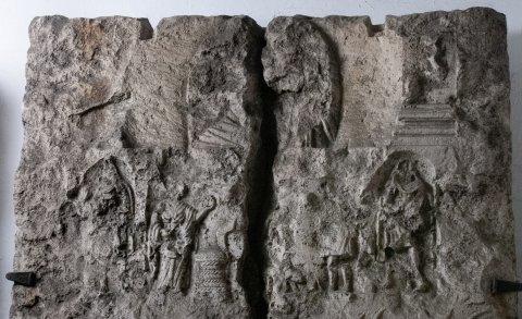 - oben abgebr., vertikal gespalten, Relief z.gr.T. abgeschlagen