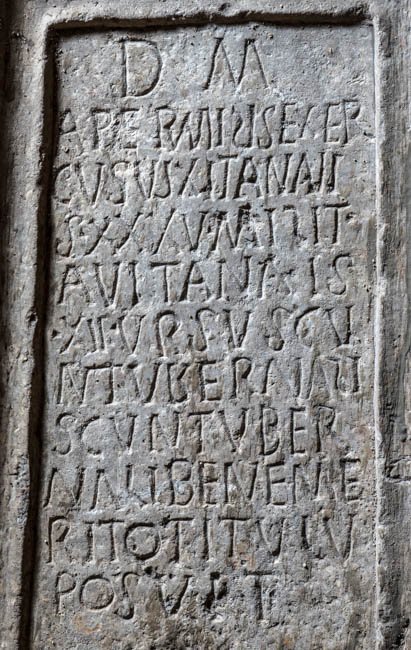 - D(is) M(anibus) / Aper milis(!) exer/c(it)us vixit anni/s XXXV milit/avit annis / XIII Ursus cu/ntubernali/s(!) cuntuber/nali(!) bene me/rito titulu(m) / posuit