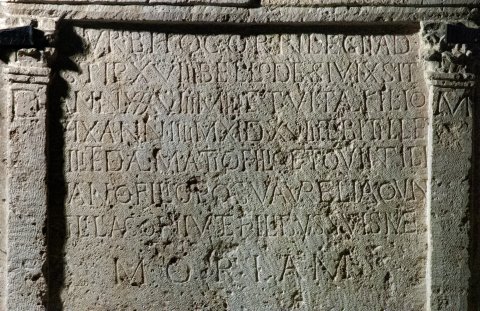 - D(is) M(anibus) // Aur(elio) Bito corn(icini) leg(ionis) II ad(iutricis) / stip(endiorum) XVIII bello desi(derato) vixsit (!) / ann(os) XXXVIII m(enses) III et Vital(i) filio / vix(it) ann(os) IIII m(enses) XI d(ies) XVIII et Bitill(a)e / fili(ae) et Dalmatio filio et Quintili/liano pilio(!=filio) posu(it) Aurelia Qu(i)n/tilila coniu(gi) et filibus suis me/moriam