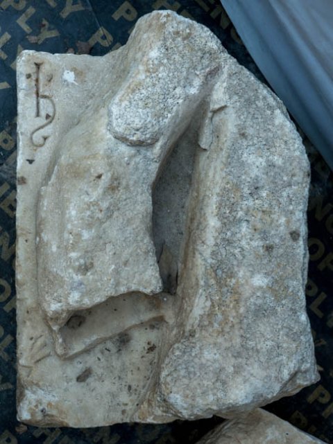 - Relieffragment, nicht deutbar ? Buchstaben sekundär ?