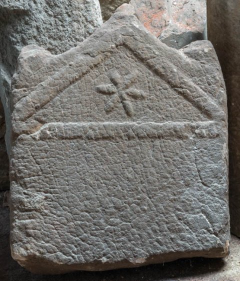 - stark verwittert, unten abgebr.