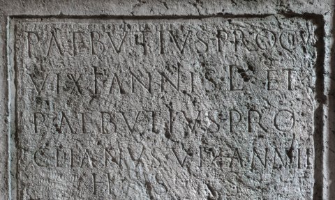 - P(ublius) Aebutius Proclus / vixit annis L et / P(ublius) Aebutius Pro/clianus vix(it) ann(os) II / h(ic) s(iti) s(unt) / Fabricia Lucilia con/iunx et P(ublius) Aebutius Rufus / et P(ublius) Aebutius Valens patri / pientissimo / f(aciendum) c(uraverunt)