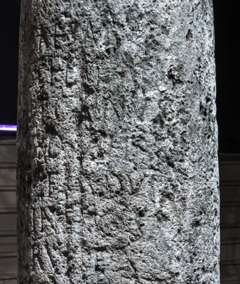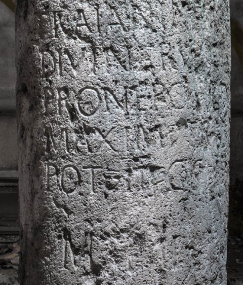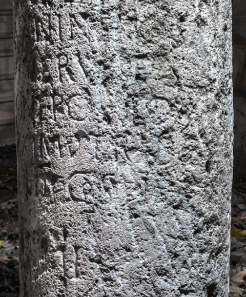 - Imper(ator) Caesar / T(itus) Aelius H[a]dria/nus Anto[ni]nus / Aug(ustus) Pius d[i]vi H[a]/driani f[i]l(ius) divi / Traiani nepos / divi Nerv[a]e / pronepos pont(ifex) / maxim(us) trib(unicia) / pot(estate) II co(n)s(ul) II / m(ilia) p(assuum) II