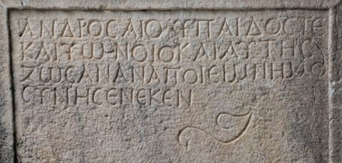 - griechisch: ἀνδρὸς αἱοῦ παιδός τε / καὶ ὑωνοῖο καὶ αὑτῆς / ζῶσα Νανα ποίει μνημο/σύνης ἕνεκεν