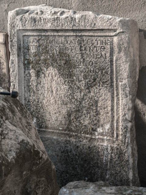 - griechisch: Μάρκου μνῆμα τόδ’ ἐστὶ νε/ωτέρου, ὅς ποτ’ ἐών γε / ἠΐθεος θαλερός, τὸν καὶ / μάκαρες ἀγάσαντο / Μουσ̣άων θεράπων οὐ/δὲ Νύμφαισιν ἀπεχθής· / δύστηνοι δὲ γονῆες ἀνέ/στησαν τόδε λά∙ι∙νον / Νικήτου Ὦπις καὶ Γάϊος / μάλ’ ἐχέφρων