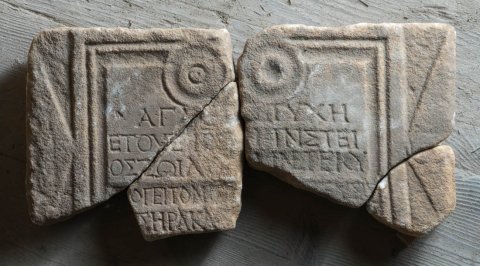 - griechisch: ἀγαθῇ τύχῃ· / ἔτους [---] Ἰνστέϊ/ος Ζωΐλ[---] ...