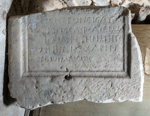 - griechisch: ---] / [--] τ̣οὺς γονεῖς αὐ[τ]ῷ / [τε]θνῶτες Αὐρ(ήλιον) Λυσίμα/[χο]ν καὶ Αὐρ(ηλίαν) τὴν μητέ/ρα μνήμης χάριν· / χ̣ε͂ρε, ὦ παροδῖτε