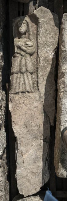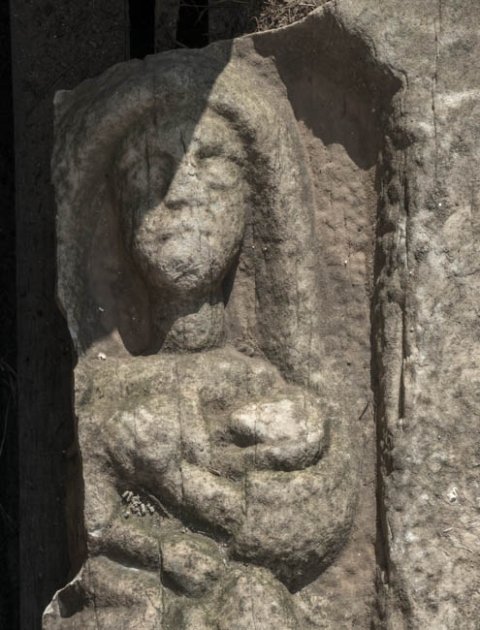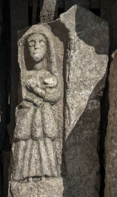 - Bildfeld mit stehender Frau mit Schleier, in den Armen Kleinkind.