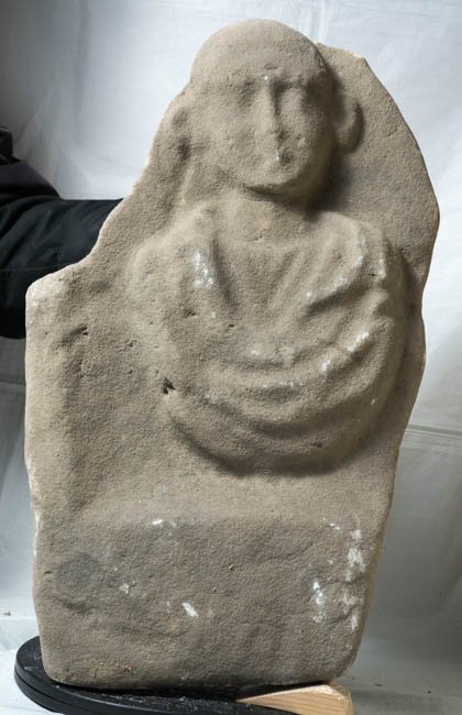 - Bildfeld mit bekleideter Büste eines bartlosen Mannes.