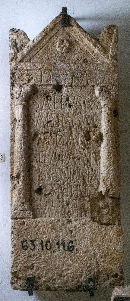 - D(is) M(anibus) // Sallustius / Sabinus / et Iulia Iu/nilia paren/tes Sabinia/no fil(io) a(n)n(i)cu/lo et mens/ium nove[(m) d(ierum) ---] / [---