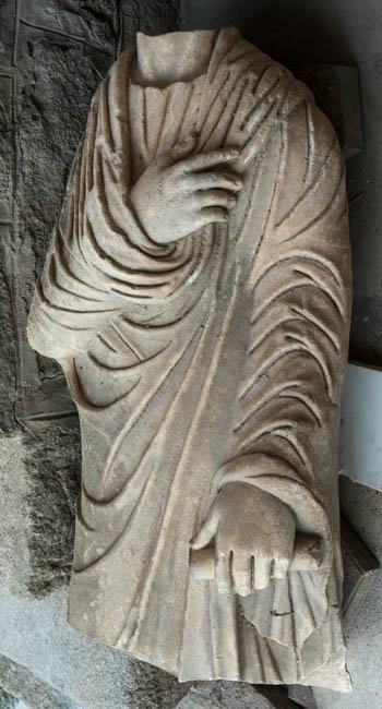 - stehender Togatus, in der linken Hand Rolle (volumen)