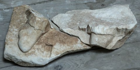 - Plinthe mit Füßen in Schuhen und Gewandsaum