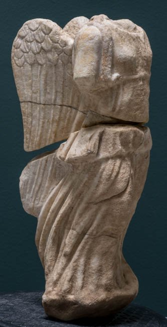 - Mythische Figur: bewegte Victoria (Nike) im hoch gegürteten Chiton.
