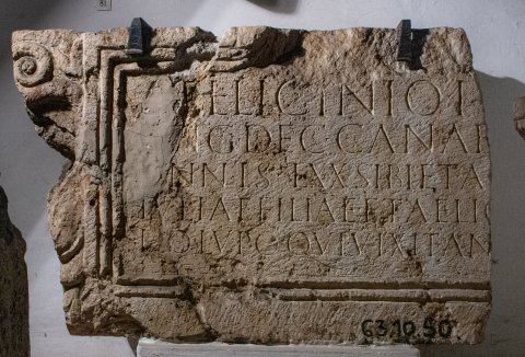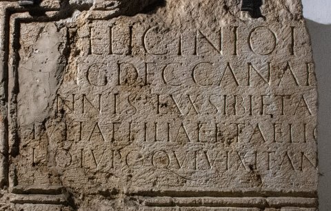 - [A]el(io) Licinio Iu[---] / [Si]ng(iduno) dec(urioni) canab(arum) [vixit] / a]nnis LXX sibi et A[eliae] / Iuliae filiae et Aelio [--- fi]/lio Lupo qui vixit an[nis ---]