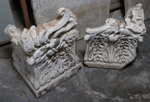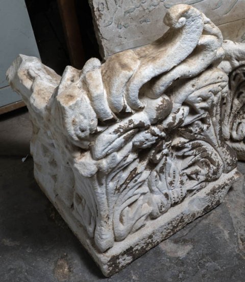 - unten Reihe von Akanthusblättern, oben große freiplastische Palmetten