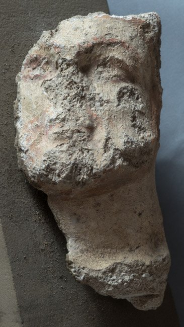 - stark bestoßen, rundum abgebr., Reste von Bemalung