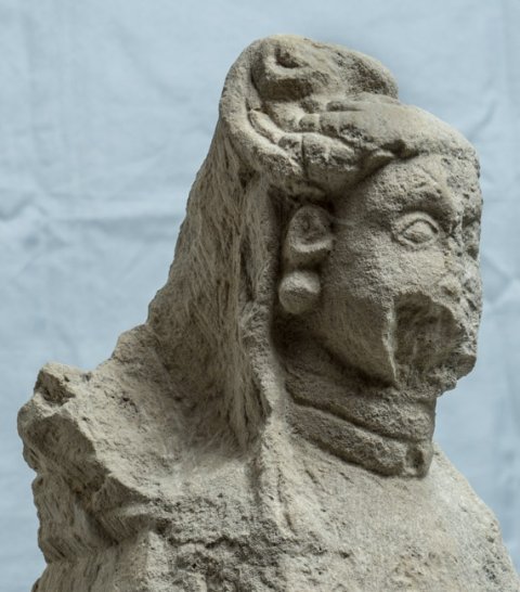 - Mythische Figur: Grabsphinx mit Halsband und Ohrgehängen.