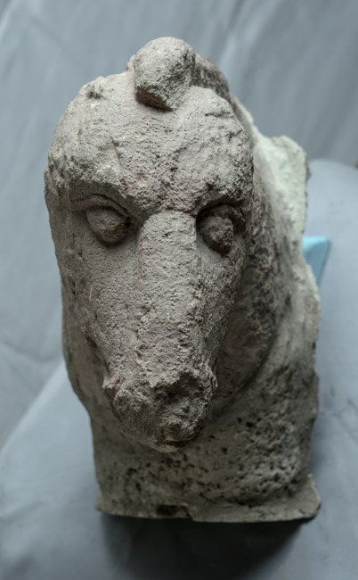 - pferdeartiger Tierkopf mit Mähne und Eberhauern