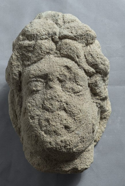 - stark bestoßen, Bruch durch den Hals, Rückseite abgebr. (Relief ?)