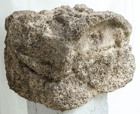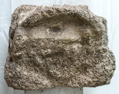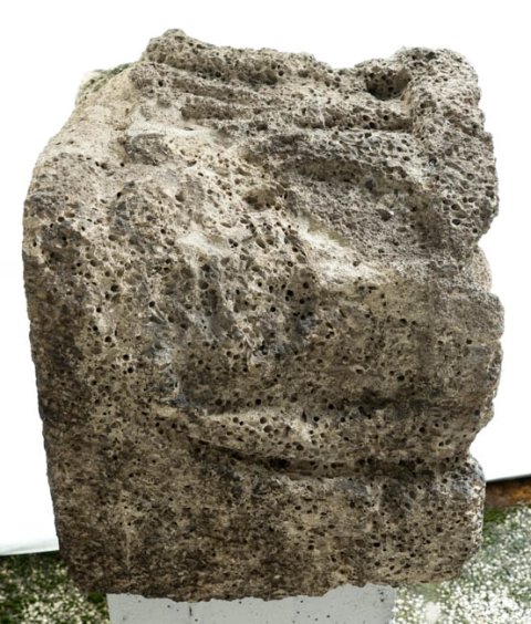 - Auf der Stirnseite bogenfömige Nische mit Rest einer Maske (Gorgoneion ?) ?