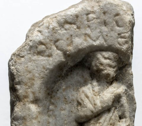 28814 Relieffragment mit Mann im Mantel