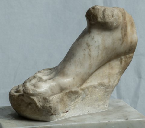- Mythische Figur (Gottheit): lebensgroßer nackter rechter Fuß mit angehobener Ferse.
