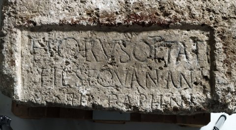 - Horus Optati / fil(ius) Sequan(us) an(norum) L / [ ---]ia Daphnis / [ ----- ] / [ --- u]xor ann(orum) / [ ---]XLV h(ic) s(ita) e(st)