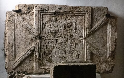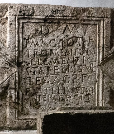 - D(is) M(anibus) / T(ito) Magio T(iti) f(ilio) / Tromentin(a) / Clementi / Stat(i)ellis vet(erano) / leg(ionis) X g(eminae) p(iae) f(idelis) / P(ublius) Atilius Sup(er?) / her(es) fecit