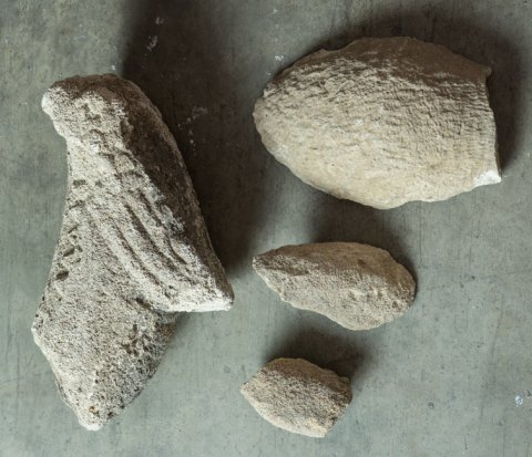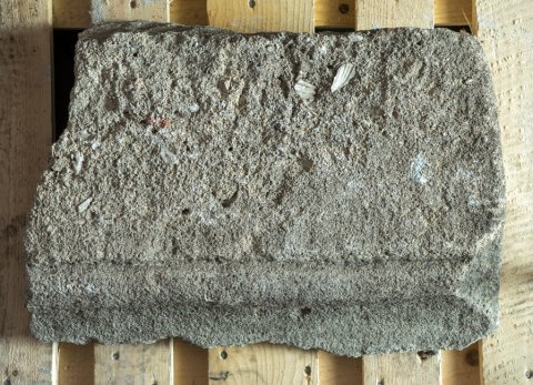 - Pinienzapfen, Platte mit Profilrand, Fragment einer Skulptur mit Flügel (?)