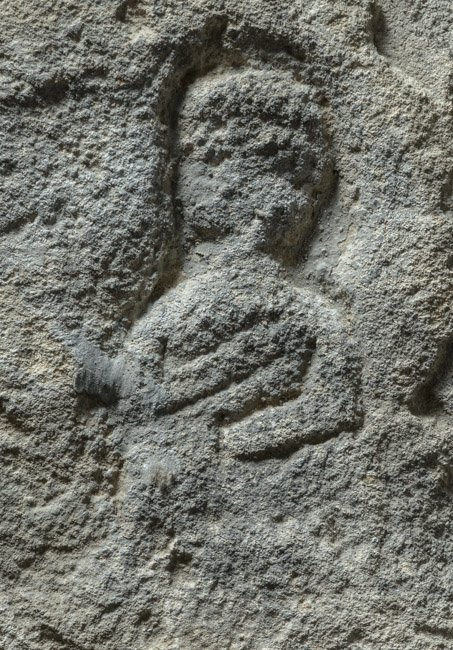 - unten abgebr., links verbr., oben u. rechts geglättet, Relief unfertig