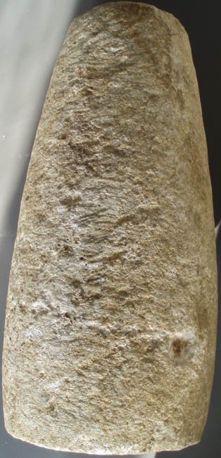 - Sich nach oben zu verjüngender balusterförmiger Stein, Unterseite schalenförmig ausgehöhlt.