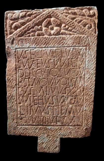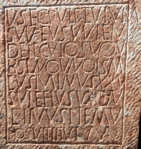 - D(is) M(anibus) // V() sec(uritati) p(erpetuae)V() titulum / Saufe(i)us Valen(s) / delicato suo U/rsino an(n)ois(!) p/lus Minus XXV (?) / Saifeius(!) Valentinus item v(ivus?) / posuit titul(u)m