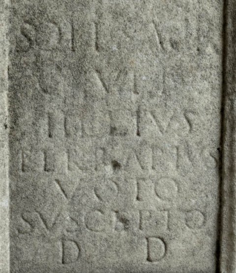 - Soli s̲a̲c̲r̲(um) / C(aius) Iuliu̲s̲ / Helius / ferrarius / voto / suscepto / d(onum) d(edit)