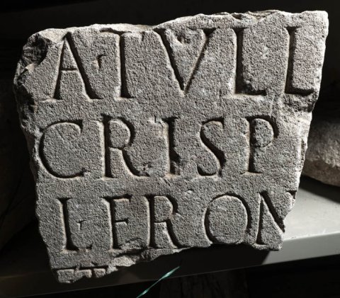 - A(ulus) Tull[ius(?)] / Crispi[nus] / in fron[te p(edes) ---] / [r]et[ro p(edes) ---]