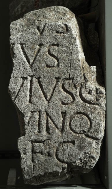 - ---]us / [---]us / [---]vius Q(uinti) f(ilius) / [--- q]uinq(uennalis) [---] / [---] f(aciundum) c(uravit)