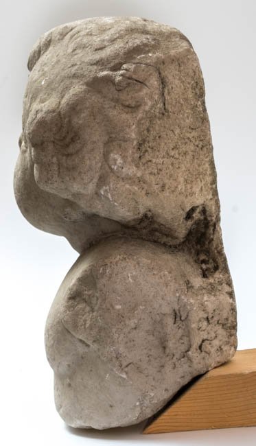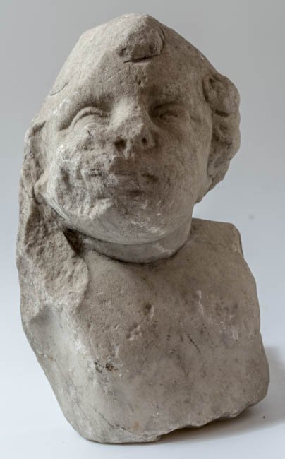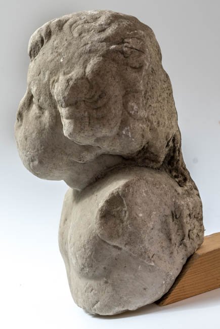 - Kopf u. Oberkörper ohne Arme erhalten, bestoßen, Rückseite verbr.