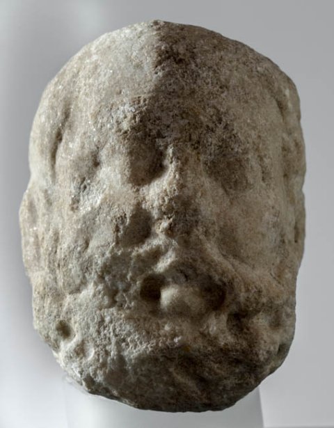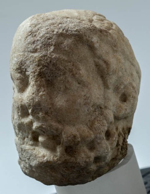 - Mythische Figur (Hercules ?): Kopf mit kurzem Haar und lockigem Vollbart.