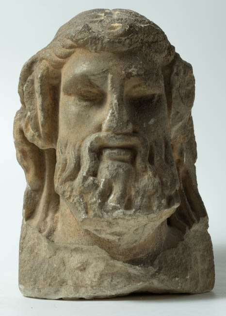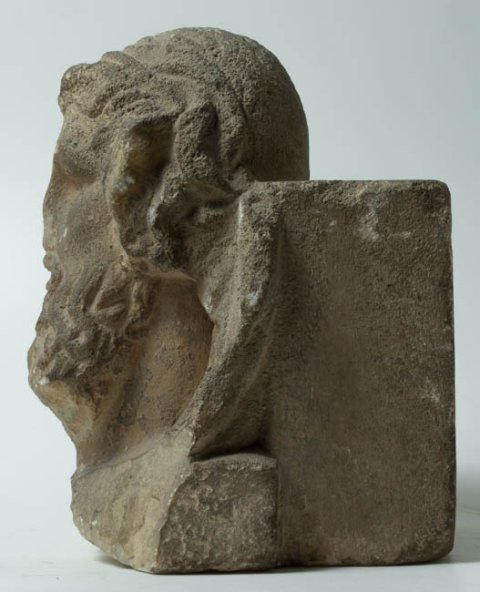 - Schulterherme mit bärtigem Dionysoskopf mit Binde und Weinblätter im Haar.