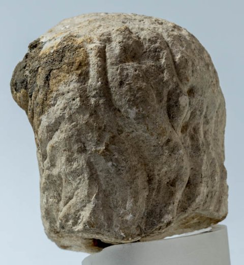 - Mythische Figur ? Kopf eines Mannes mit langem Haar und Vollbart.