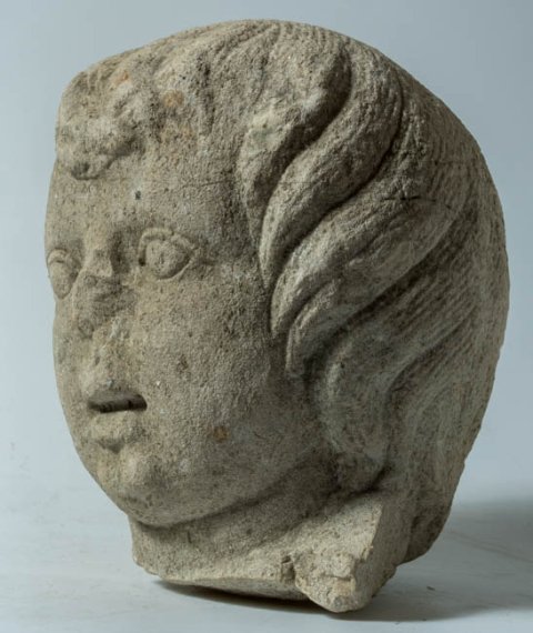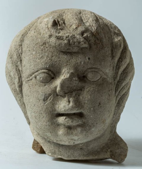 - Kopf eines Kleinkindes mit strähnigem Haar. Grabporträt ? Erot ?