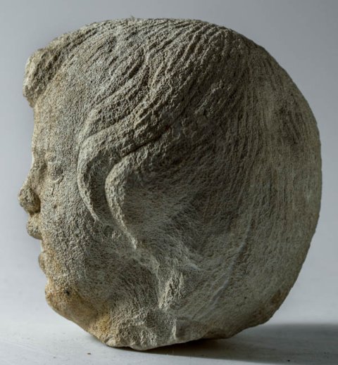 - Köpfchen eines Kleinkindes mit strähnigem Haar. Grabporträt ? Erot ?