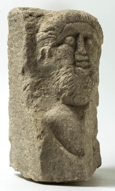 - Mythische Figur ? Hermenschaft mit Büste eines bärtigen Mannes vor Pfeiler.
