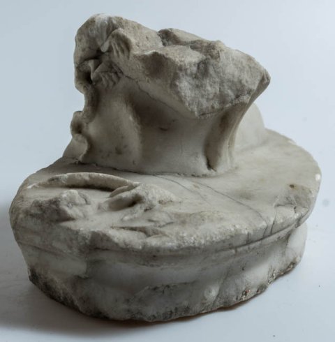 - Oben abgebr., ca. ein Drittel der Plinthe abgebr., keine Reste der Statuette erhalten.