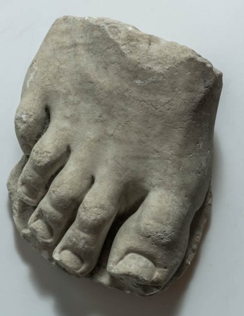 - Plinthenfragment mit überlebensgroßem, nacktem rechten Vorderfuß