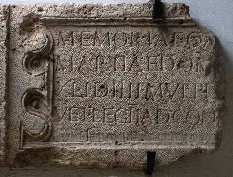 - D(is) [M(anibus)] / memoriae q(uondam) A[ureliae] / Martiae dom(o) [Aq(uinco) vix(it) ann(os)] / XLI d(ies) IIII M(arcus) Ulp(ius) D[asianus] / vet(eranus) leg(ionis) II adi(utricis) coni[ug(i) karissim(a)e] / f(aciendum) [c(uravit)]