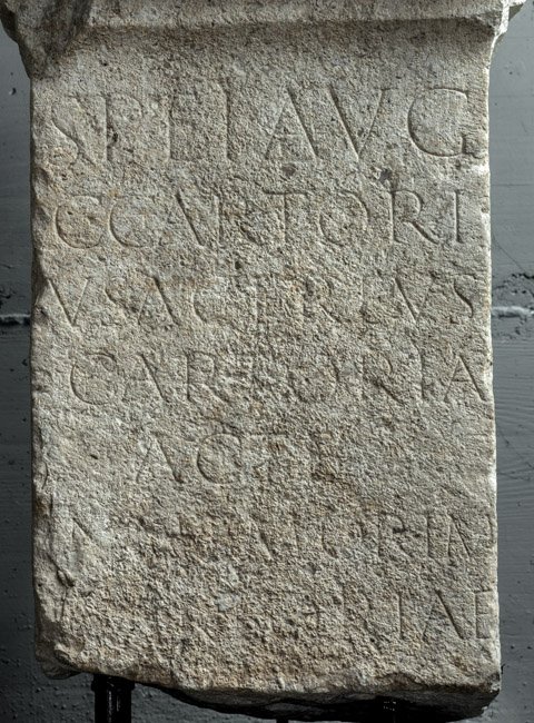 - Spei Aug(ustae) / C(aius) Cartori/us Acereus / Cartoria / Acte / [i]n [m]emoriam / [Ca]rtoriae / [