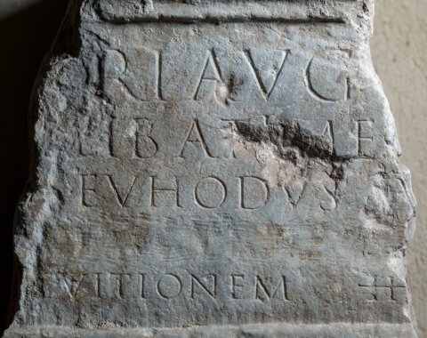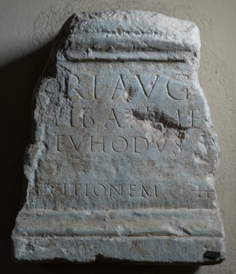- [Cere]ri(?) Aug[ustae] / [T(itus) Aelius T(iti)] lib(ertus) Atimet[us VIvir] / [---]s Euhodus Au[gustalis] / [donum deder(unt?)] / [item in] tuitionem H[S ---]