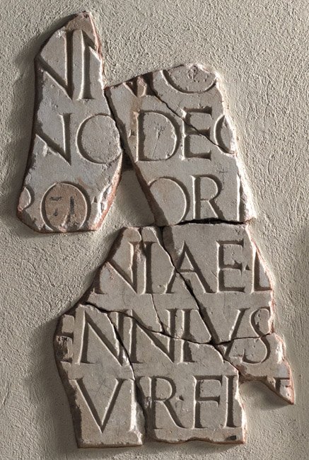 - ---?] / [--- E]nnio [---] / [--- patro]no de[curioni ---] / [--- Fo]ro Corn[eli ---] / [--- En]niae L(uci) [---] / [---] Ennius L(uci) [l(ibertus) ---] / [--- sex]vir fier[i iussit]