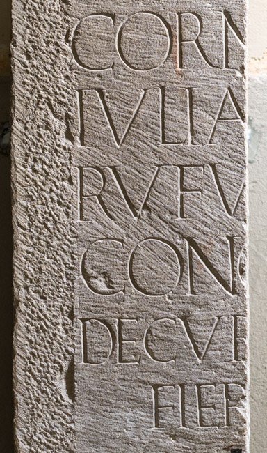 - C(aius) V[et---] / pater [decurio ---] / Foro [Corneli ---] / mate[r C(aius) Vet---] / frate[r decurio --- Foro] / Corn[eli et ---] / Iulia [Concordia --- Vet---] / Rufu[s decurio --- Iulia] / Conc[ordia --- loc(us) dat(us) decret(o)] / decur[io(num) testamento?] / fier[i iussit]